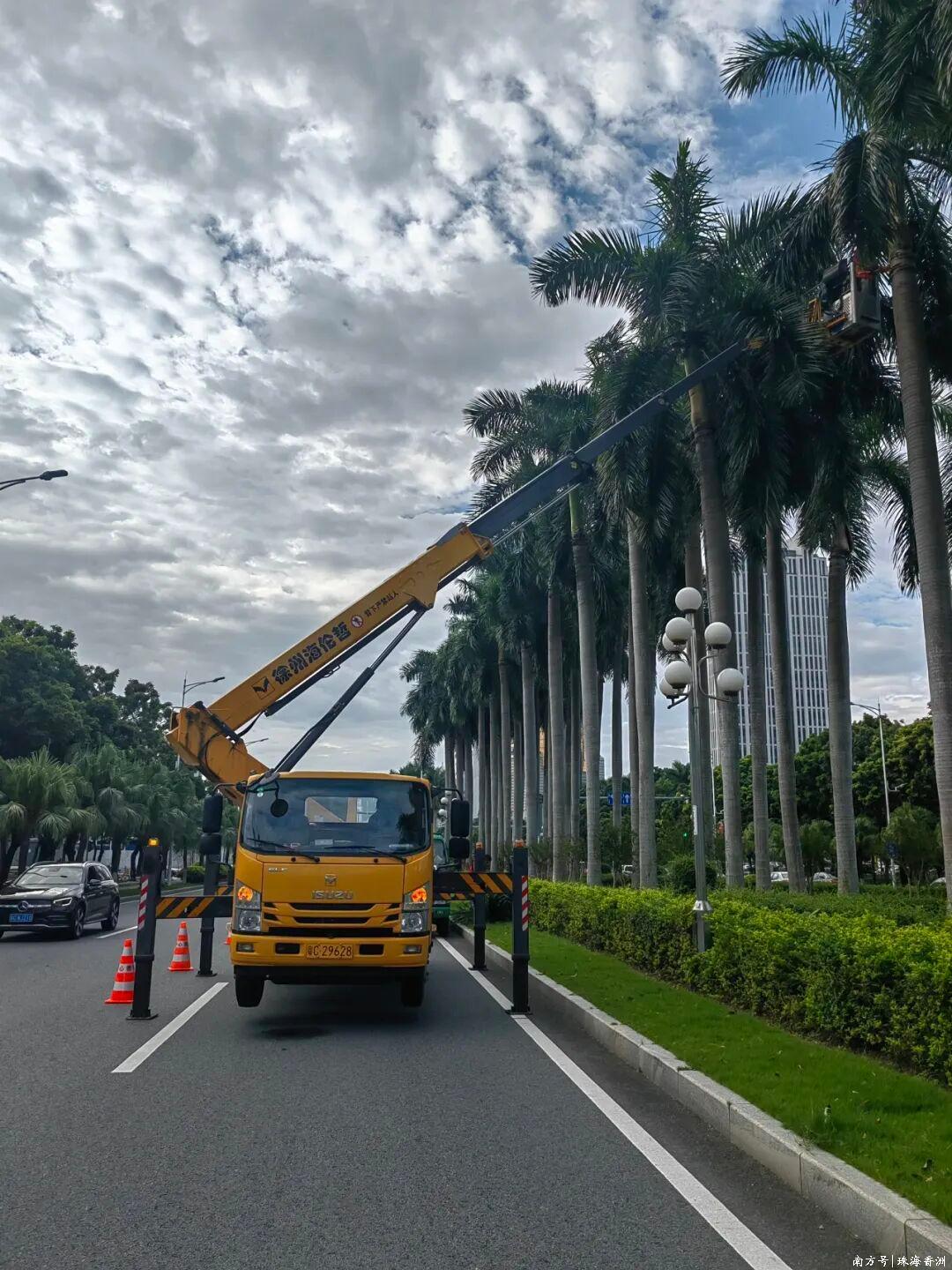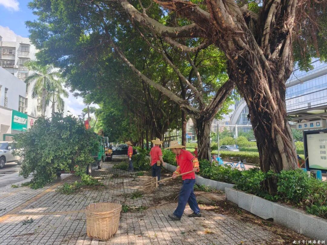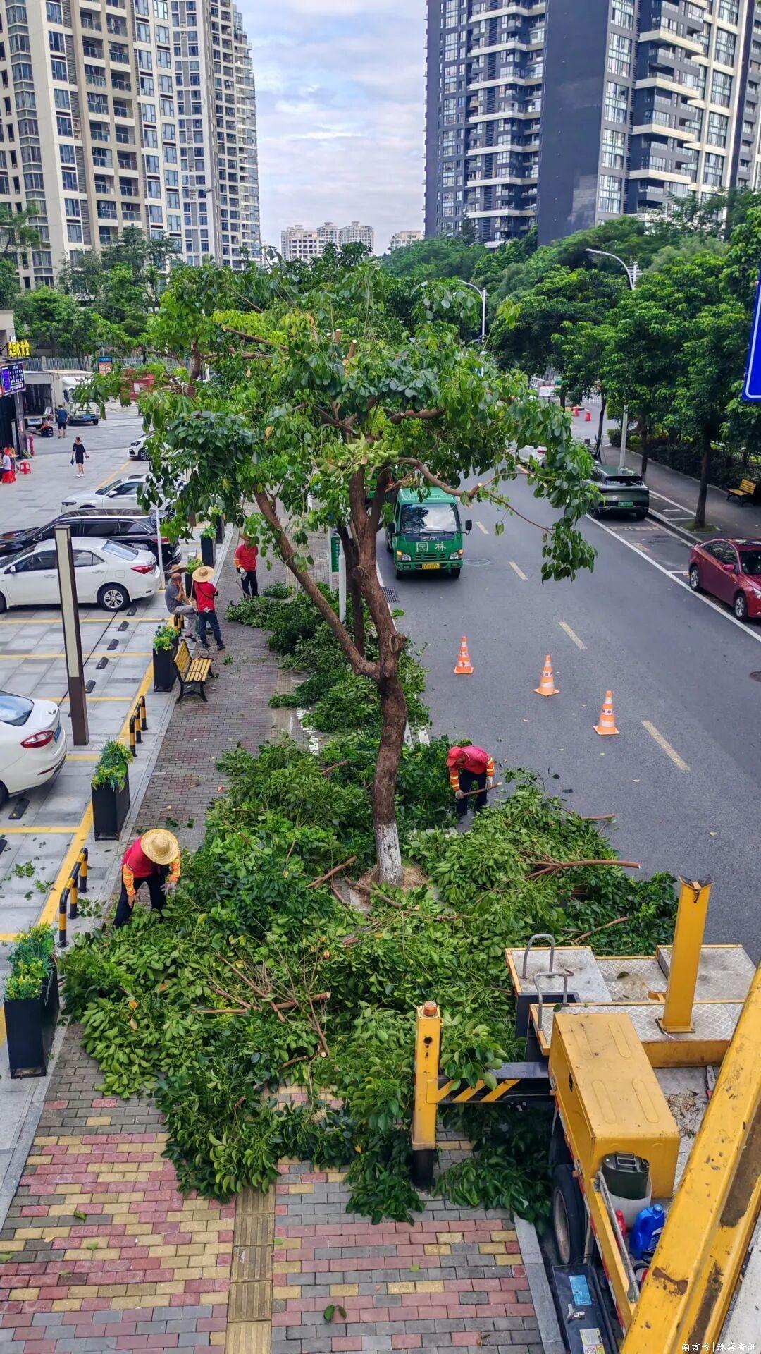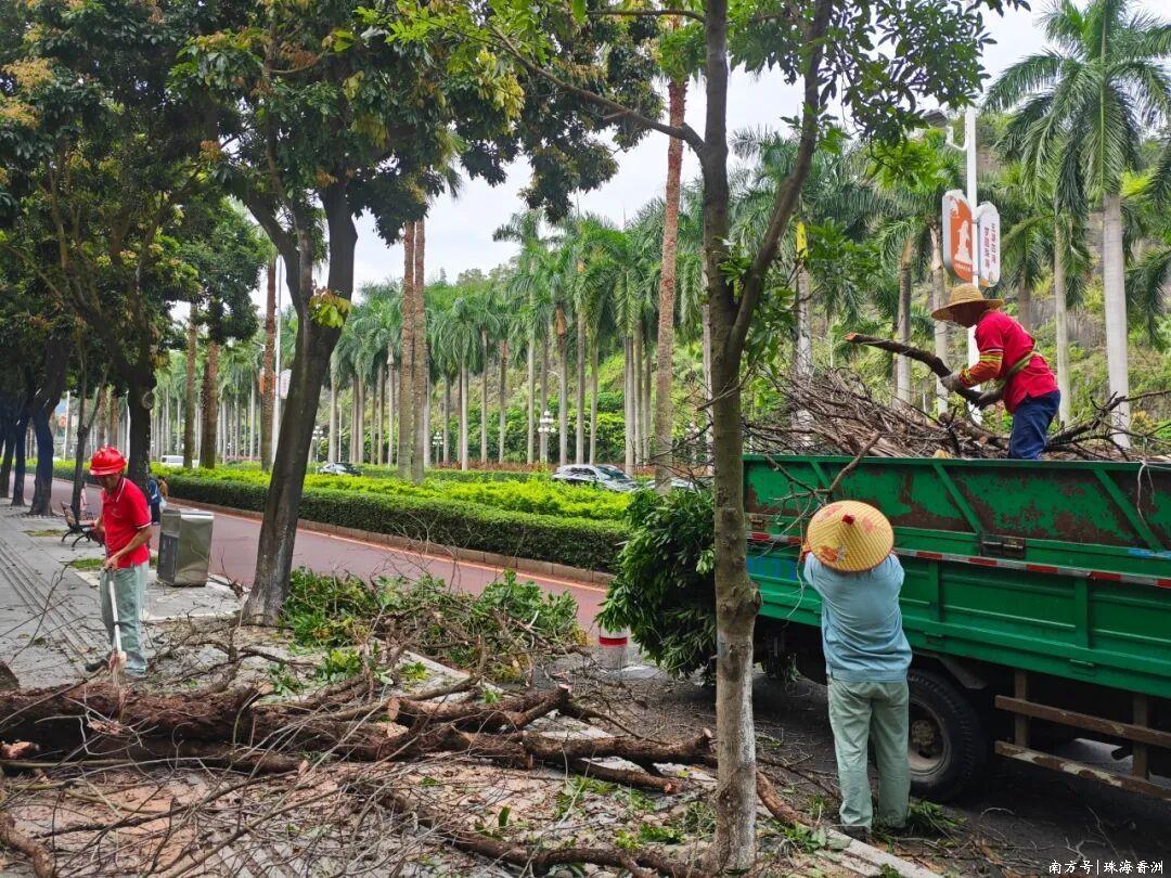 為全面防范超強臺風“樺加沙”的影響,臺風來臨前香洲區組織園林綠化管理部門開展全面排查,對各類園林樹木開展清疏修剪、扶正加固等工作。截至9月23日6時,共修剪5005株,樹木加固1734株,清理干枝干葉724處,清理隱患樹木27株,扶正樹木36株,出動人員1697人次、車輛216臺班。