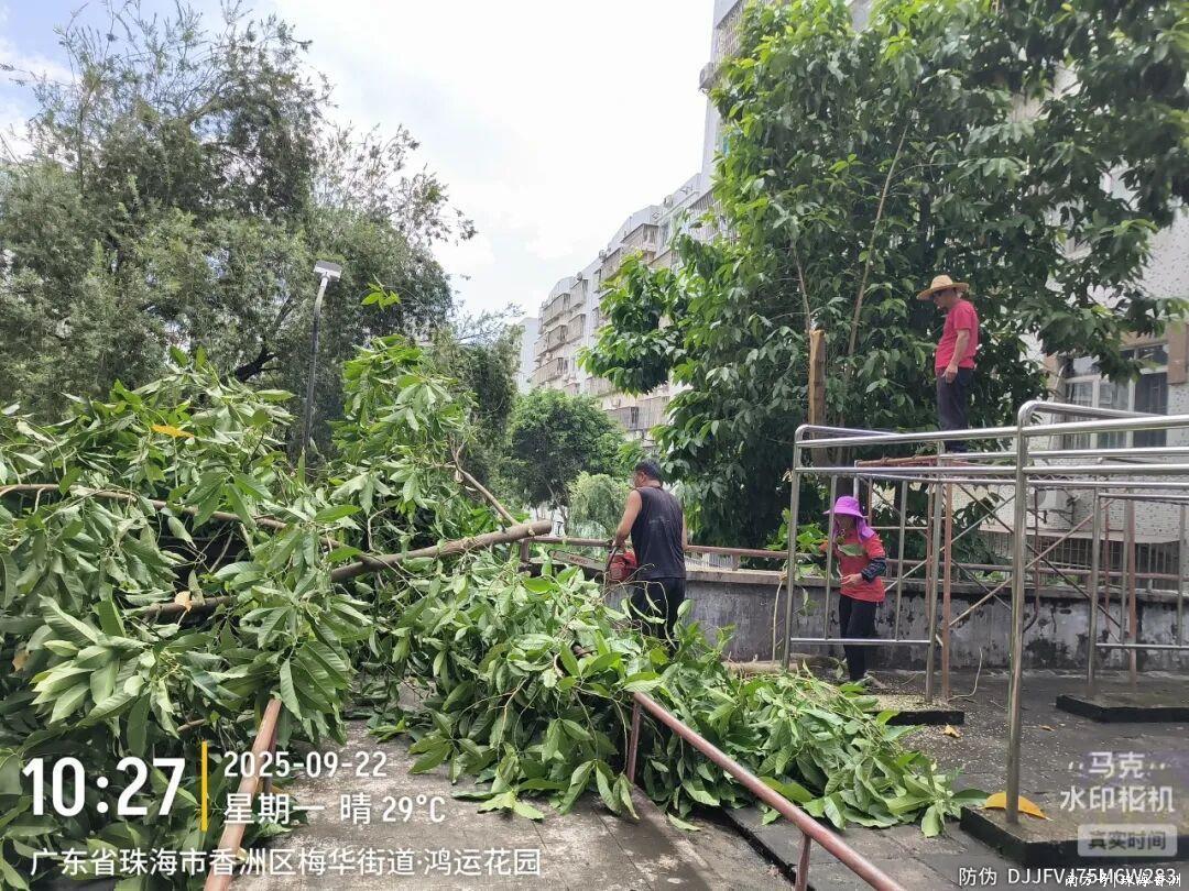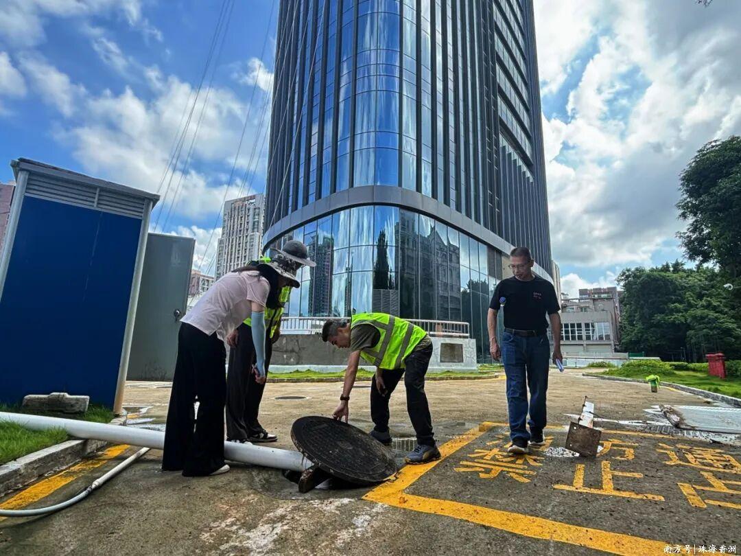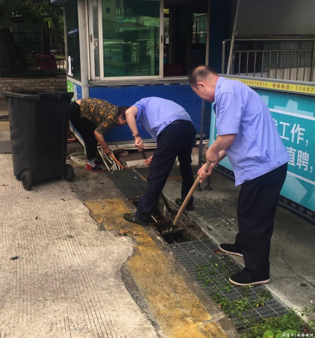對小區排水口、低洼地段、雨水井蓋等關鍵點位進行拉網式排查,及時清掏堵塞管道,檢查設施完好情況,加強防臺風宣傳,發動居民清理陽臺花盆、樓頂雜物,準備生活用品,并在各業主群實時推送預警信息和安全提醒,全面提升居民自我防范意識。