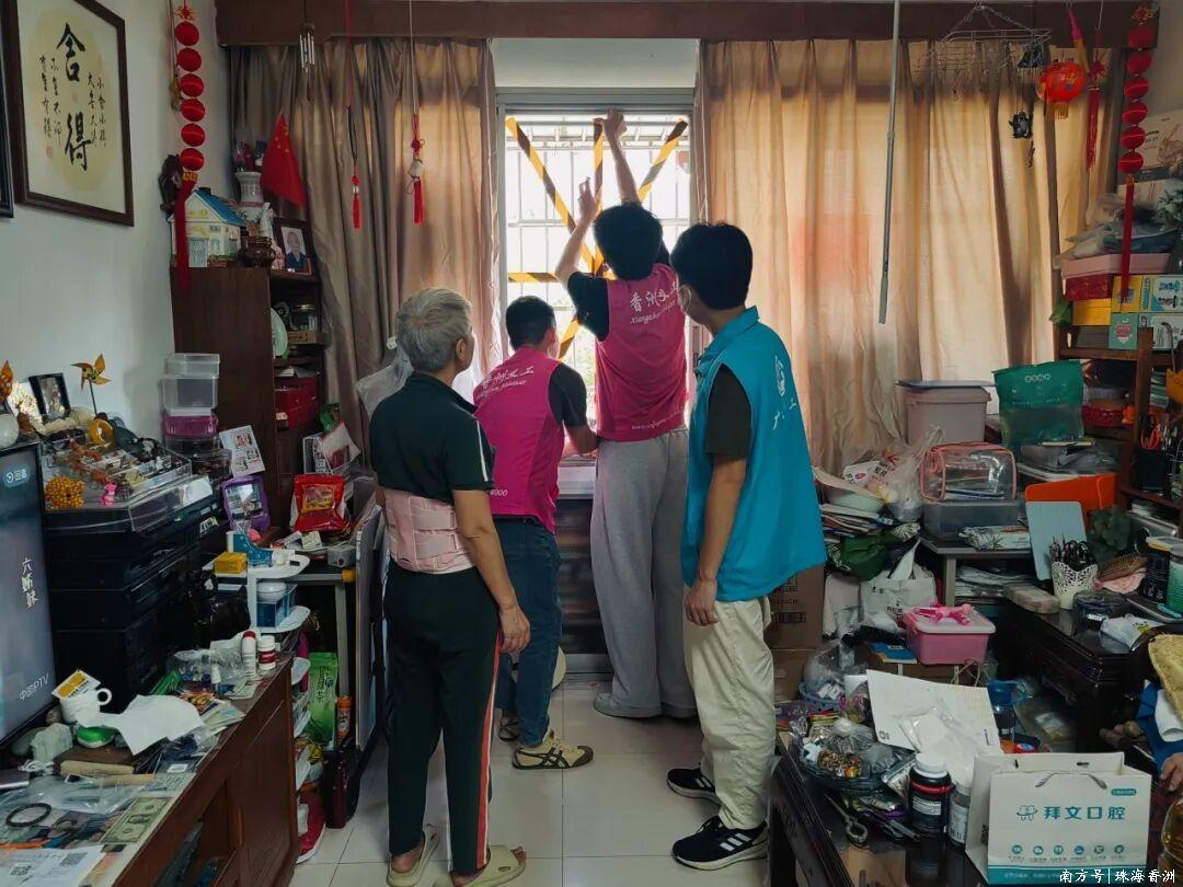 針對獨居老人、低保戶及殘疾人家庭,耐心叮囑居民做好防風措施,幫助檢查水電燃氣安全,協助在窗戶玻璃上粘貼“米”字防爆膠帶,并送上了飲用水、應急食品等必要物資,為特殊群體筑起了一道溫暖的防護屏障。
